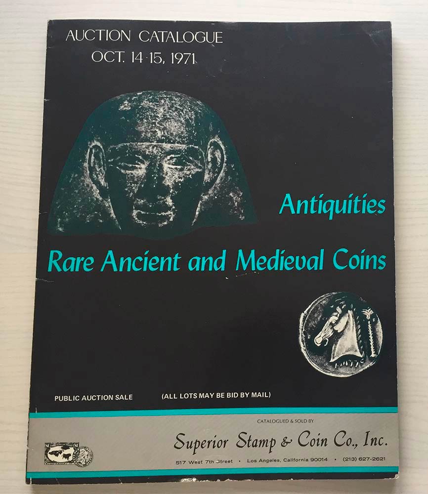 Superior Galleries Antiquities, Ancient and Medieval Coins. Los Angeles 14-15 October 1971. Brossura ed. pp. 76. Lotti 1091, tavv. Tavv. In b/n. Buono stato.