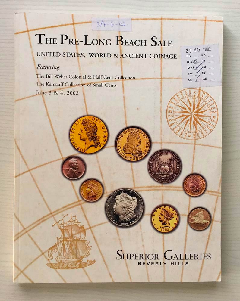 Superior Galleries Pre-Long Beach Sale United States, World and Ancient Coinage featuring The Bill Weber Colonial & Half Cent Collection. The Kamauff Collection of Small Cents. Beverly Hills 03-04 June 2002. Brossura ed. pp. 304,