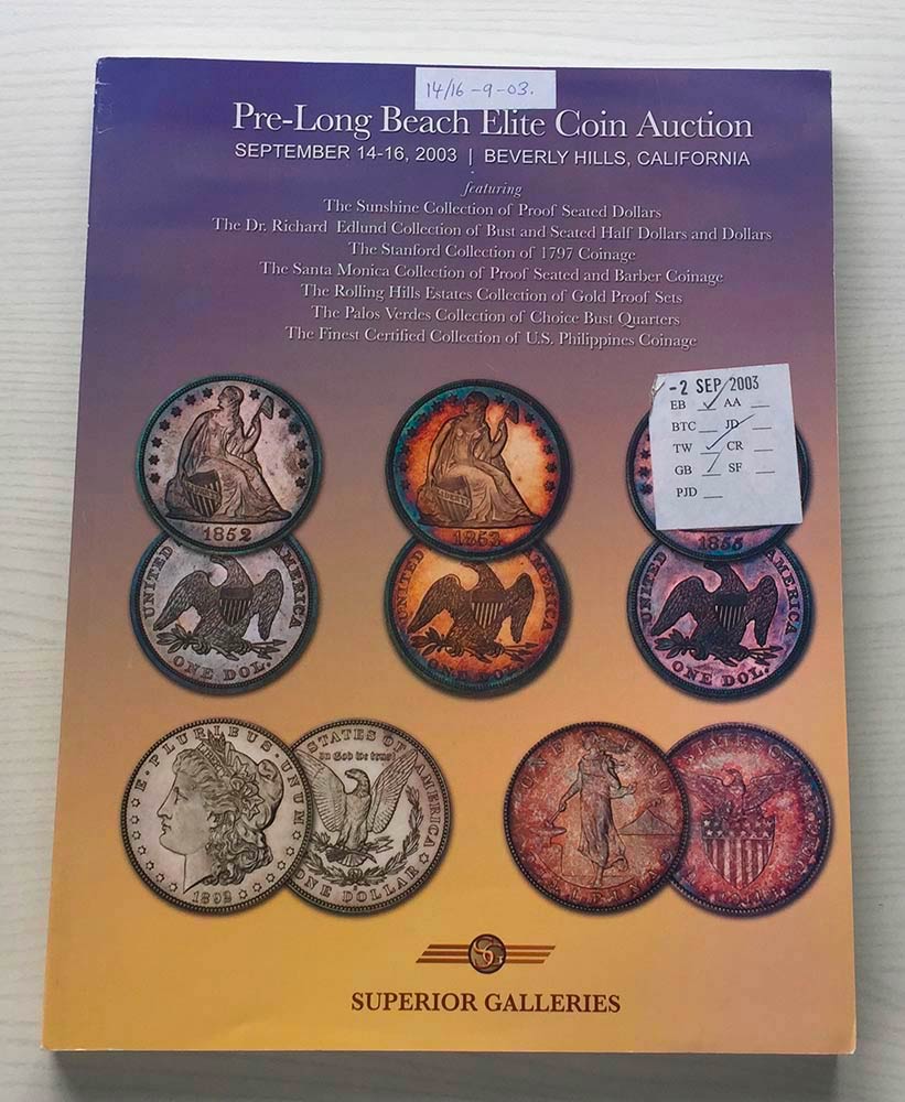 Superior Galleries Pre-Long Beach Elite Coin Auction featuring The Sunshine Collection of Proof.Seated Dollars, The Dr, Richard Edlund Collection of Bust and Seated Half Dollars and Dollars. The Stanford Collection of 1797 Coinage