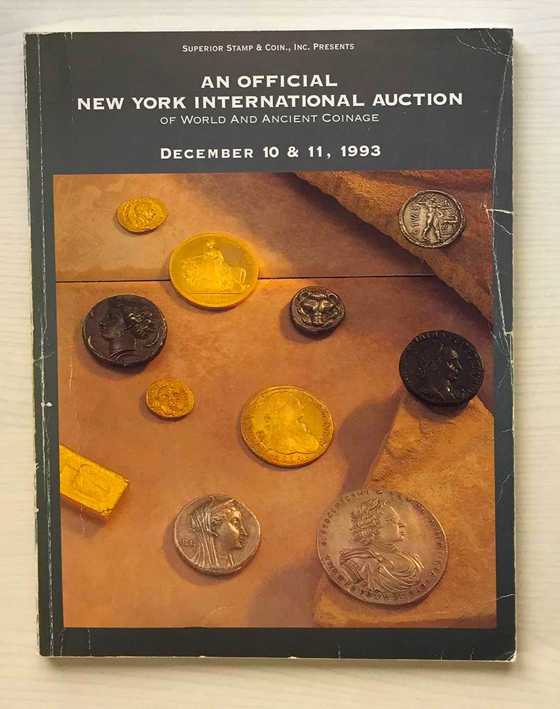 Superior Stamp & Coin. An Official New York International Auction of World and Ancient Coinage, featuring the Worrell Collection. New York 10-11 December 1993. Brossura ed. pp. 164, lotti da 601 a 2020, ill. in b/n. Col lista prez