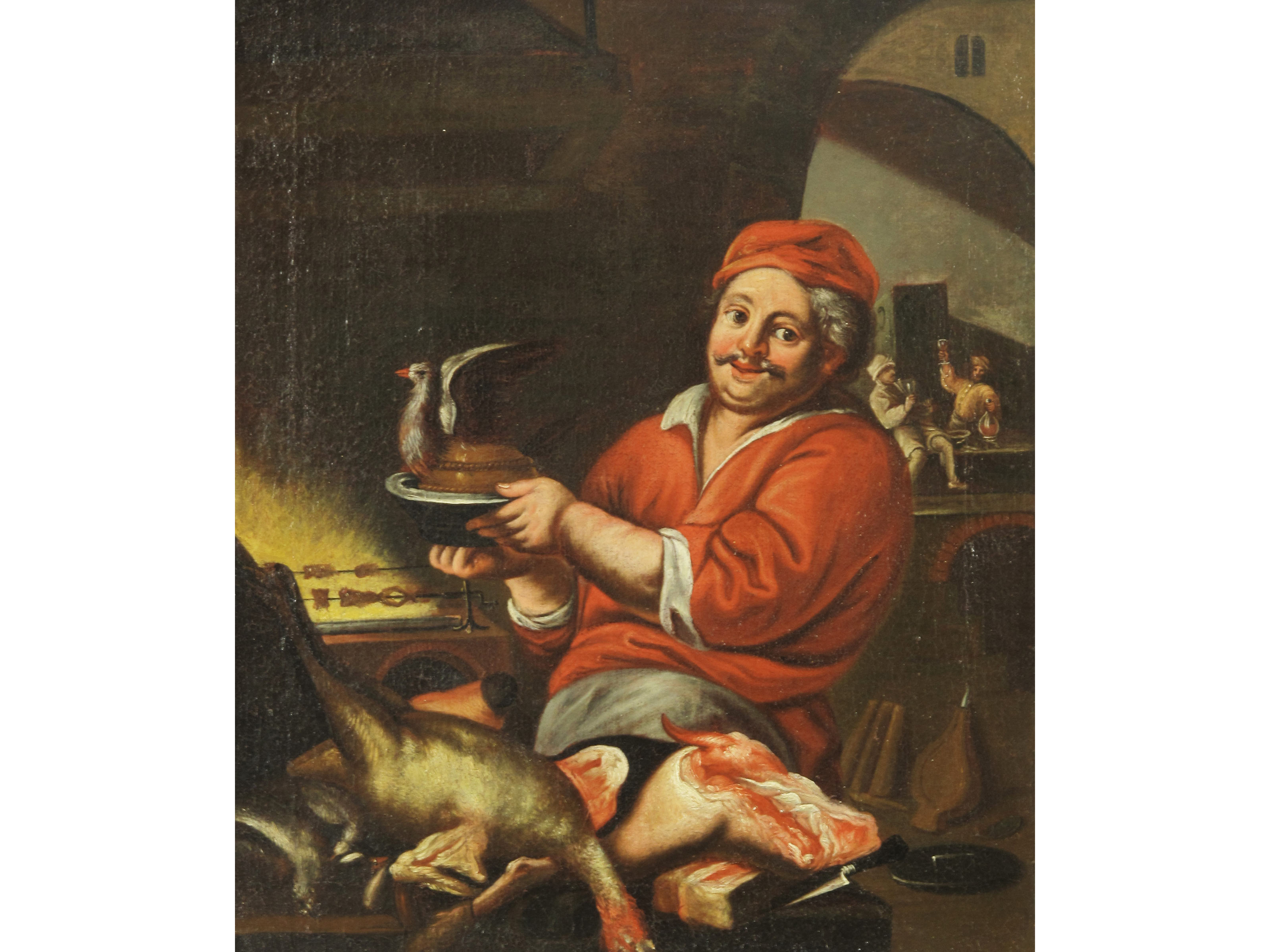 Scuola francese (XVII secolo) Macellaio Olio su tela Senza cornice Misure 48.5x40.5 cm