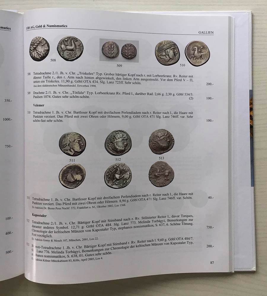 Lotto 3361 | UBS Auction 77 Celtic Coins and Other Ancient Coins Collection Erich Karl. Zurich 09 September 2008. Cartonato ed. pp. 131, lotti 758, ill. a colori. Ottimo stato
