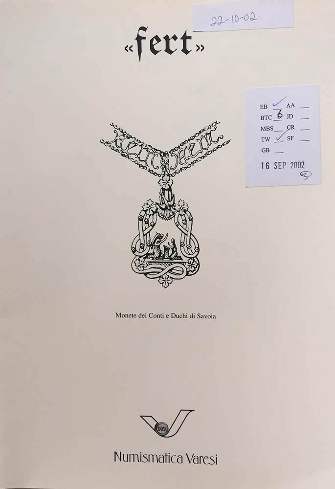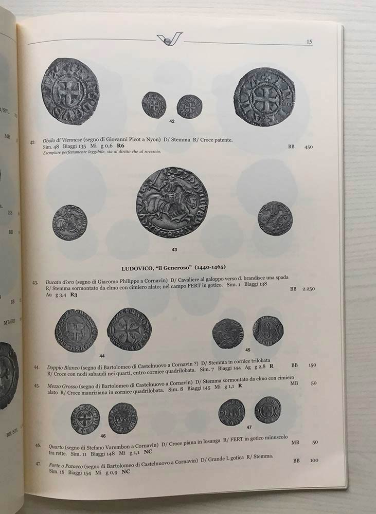 Varesi C. Asta XXXIX Monete dei Conti e Duchi di Savoia. Pavia 22 Ottobre 2002. Brossura ed. pp. 35, lotti 191, ill. in b/n. Ottimo stato