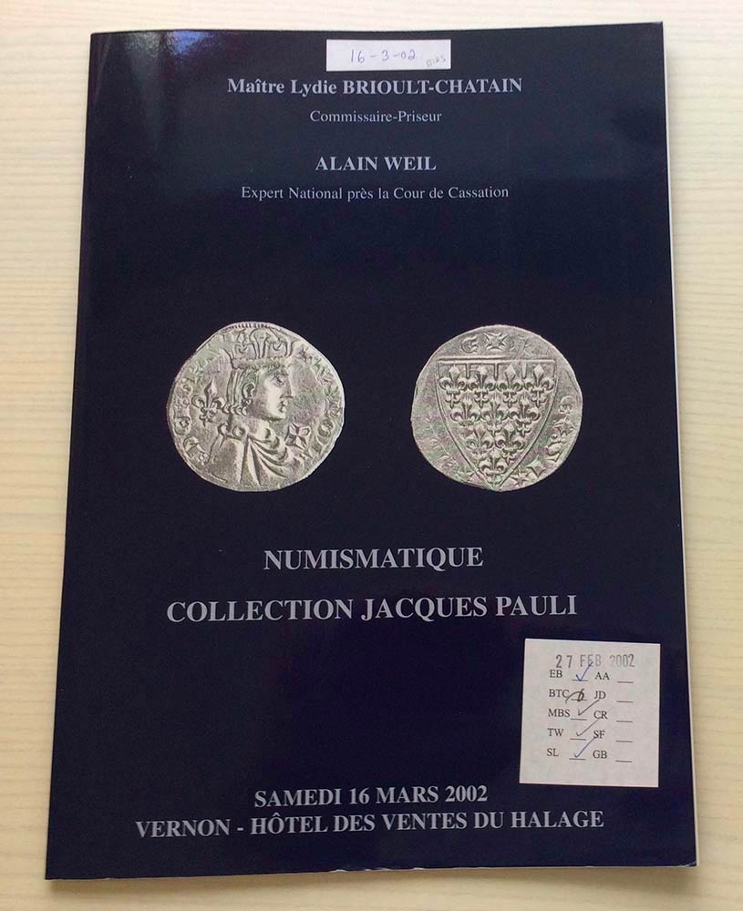 Weil A. Collection Jacques Pauli Monnaies Antiques Grecques et Romaines... Paris 16 Mars 2002. Brossura ed. lotti 291, tavv. In b/n. Con lisata prezzi di realizzo. Ottimo stato