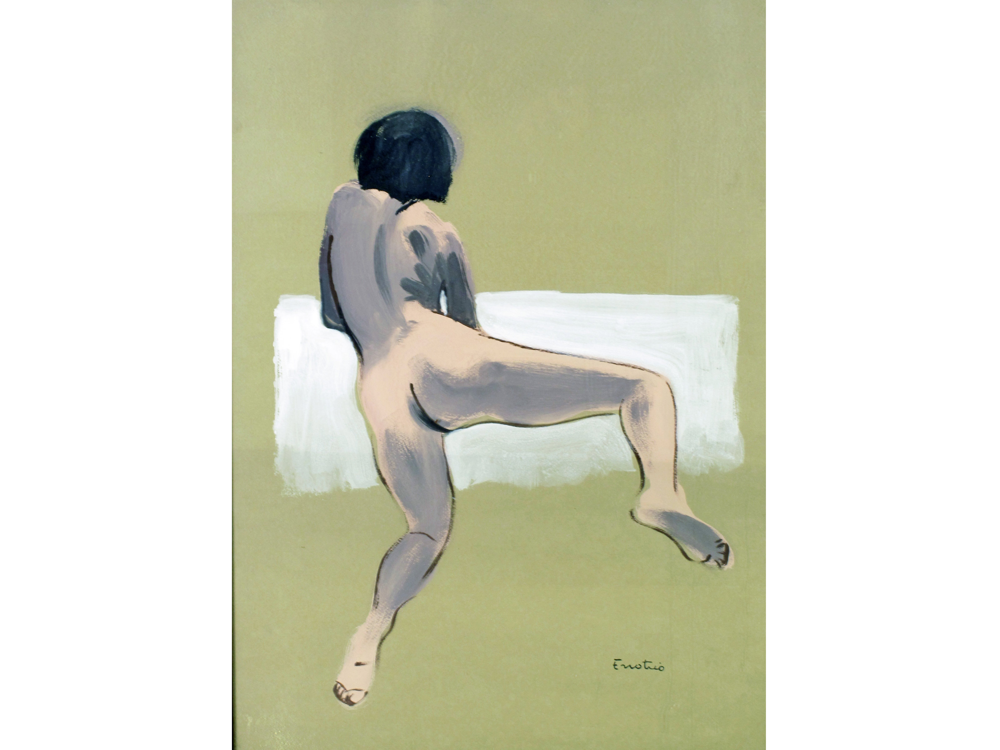 Enotrio Pugliese (Buenos Aires 1920-Pizzo 1989) Nudo Tempera su carta Firmato...