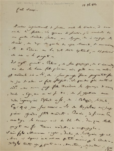 (380 x 345mm). 116 loose issues from 3 September 1818 to Sunday 2 October 1819 (117-118 missing) printed on blue paper, 5 cent Austrian stamp on each number. Uncut copies (some light spotting). [WITH:] Autograph letter from Luigi Porro Lambertenghi to the Marquis Trivulzio of 18 October 1820 in which he speaks of the recent arrest of Pellico (which took place on 13 October).