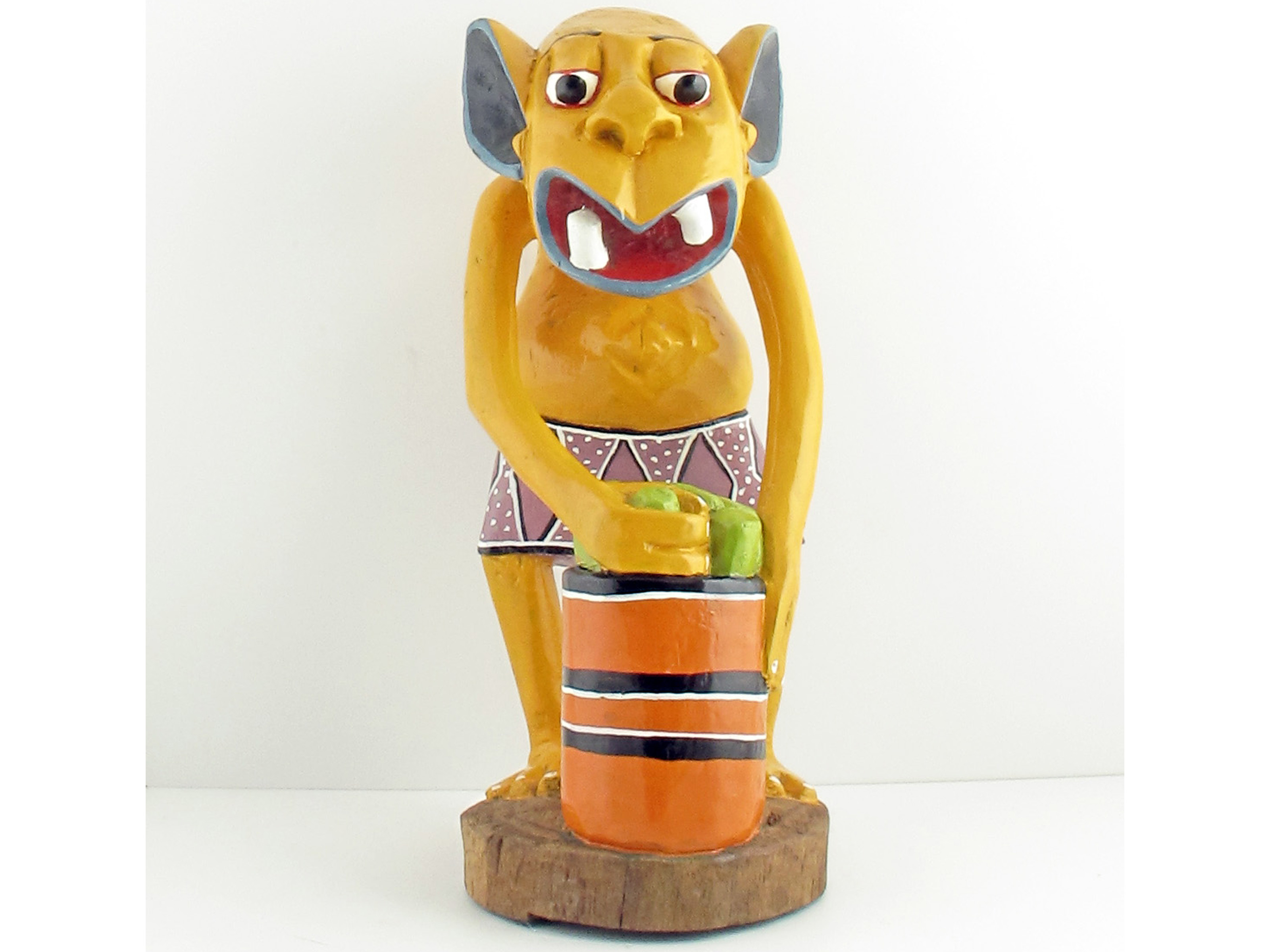 George Lilanga (1934-2005) Figura Smalti a olio su legno di mkongo Firmato...