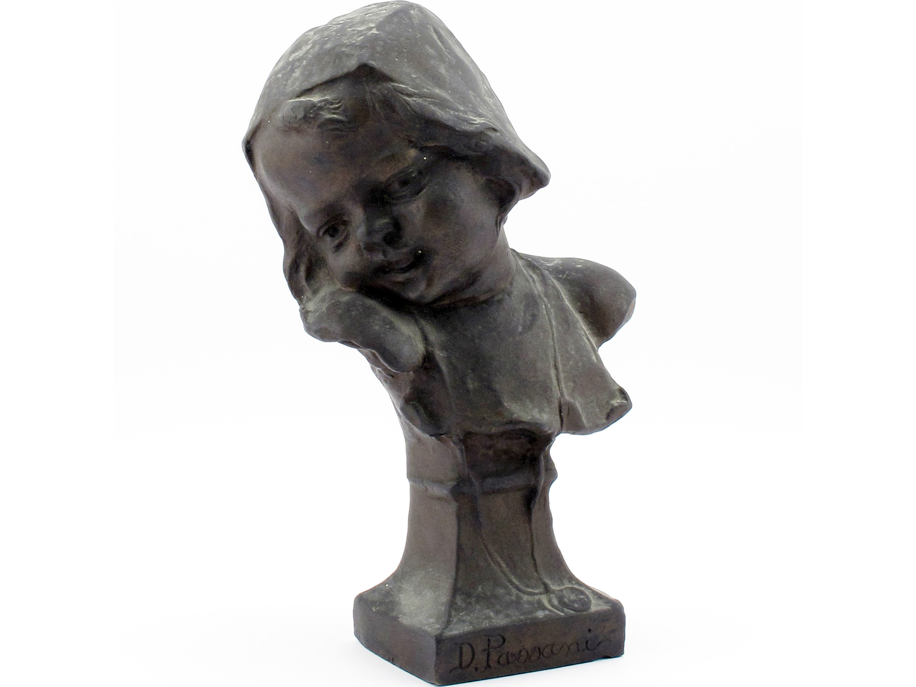 Decimo Passani (Carrara 1884 - 1952) Busto di Bambino Bronzo Firmato Altezza 16.5 cm
