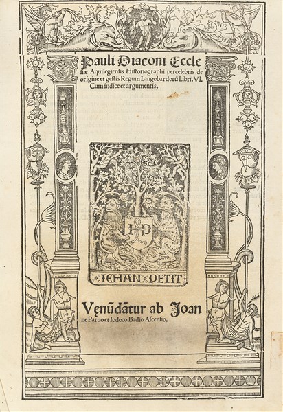 PAOLO DIACONO (720-799) - De Origine et gestis Regum Langobardorum Libri VI. Paris: Giovanni Paruo e Iodoco Badio Ascensio, 1514.