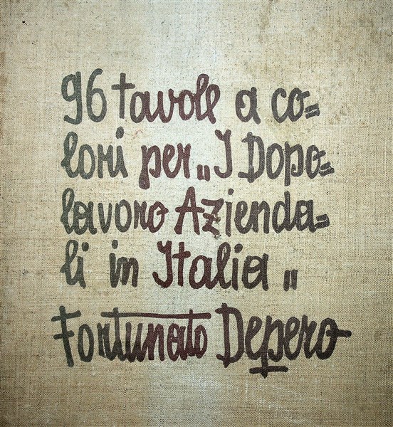Copy n. 46 of 200 printed by the artist. Depero worked on the production of some illustrations for a volume titled "I dopolavoro aziendali per l'Opera Nazionale Dopolavoro", and of these he kept 200 copies of the series of the plates.