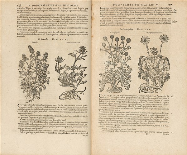 Seconda edizione, quella definitiva, dell'opera di Dodoens, nonchè "l'ultimo e il più comprensivo libro di Botanica" (Hunt). Questa edizione include un maggior numero di illustrazioni rispetto alla prima. Plantin acquistò una parte dei legni, quelli già utilizzati nell'edizione in 8vo dell'erbario di Leonhard Fuch's, dalla vedova di Jan van der Loe, lo stampatore del Cruydeboek di Dodoen. Gli altri furono intagliati dall'artista Pieter van der Brocht la cui collezione, conservata presso la Staatsbibliothek di Berlino, costituisce una delle più importanti collezioni di illustrazioni di botanica del XVI secolo tuttora esistenti.