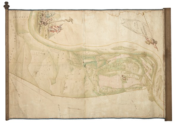 (690 x 1000mm). Manuscript on paper, with watercolouring, laid on cloth, with wood supports (light staining and creasing, some worming to wood).