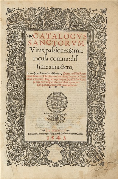 NATALI, Pietro (attivo 1370-1400) - Catalogus sanctorum. Vitas passiones & miracula commodissime annectens. Lyon: Egidio e Giacomo Huguetan, 1542.