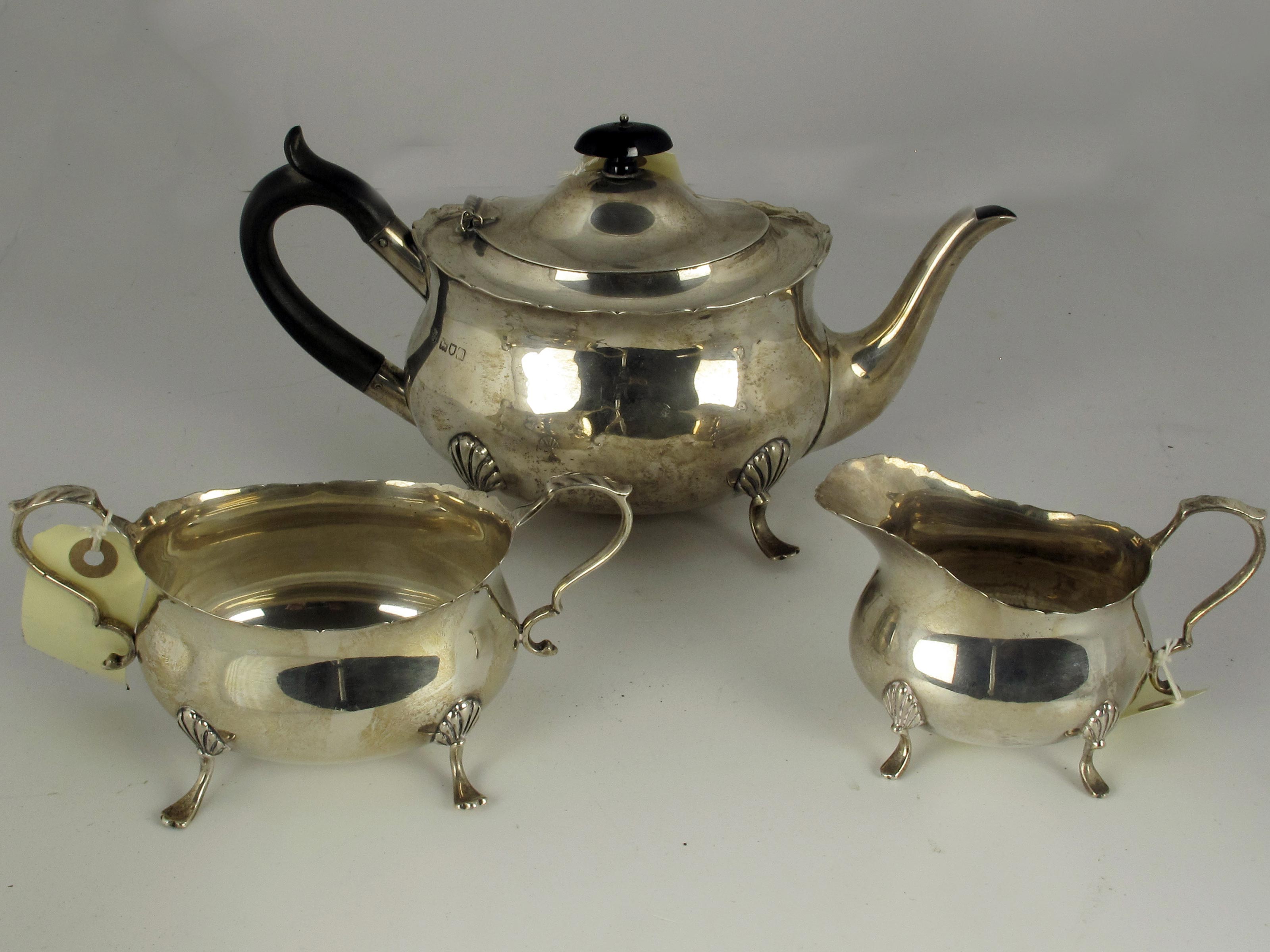 Servizio da tre pezzi in argento marchiato inglese Epoca Edoardo VI, Londra,...