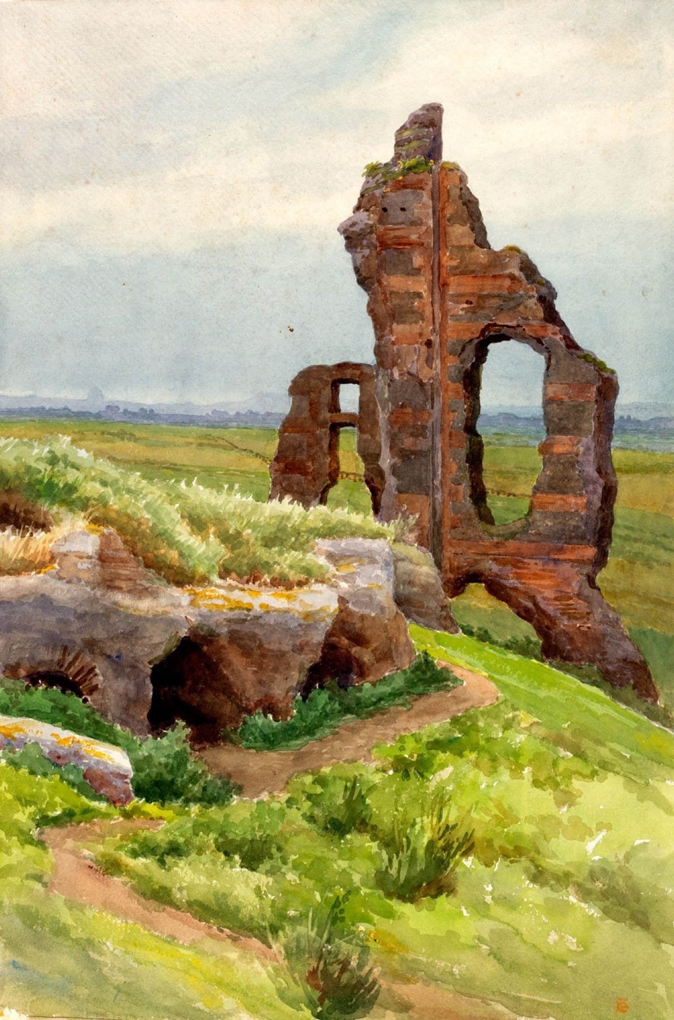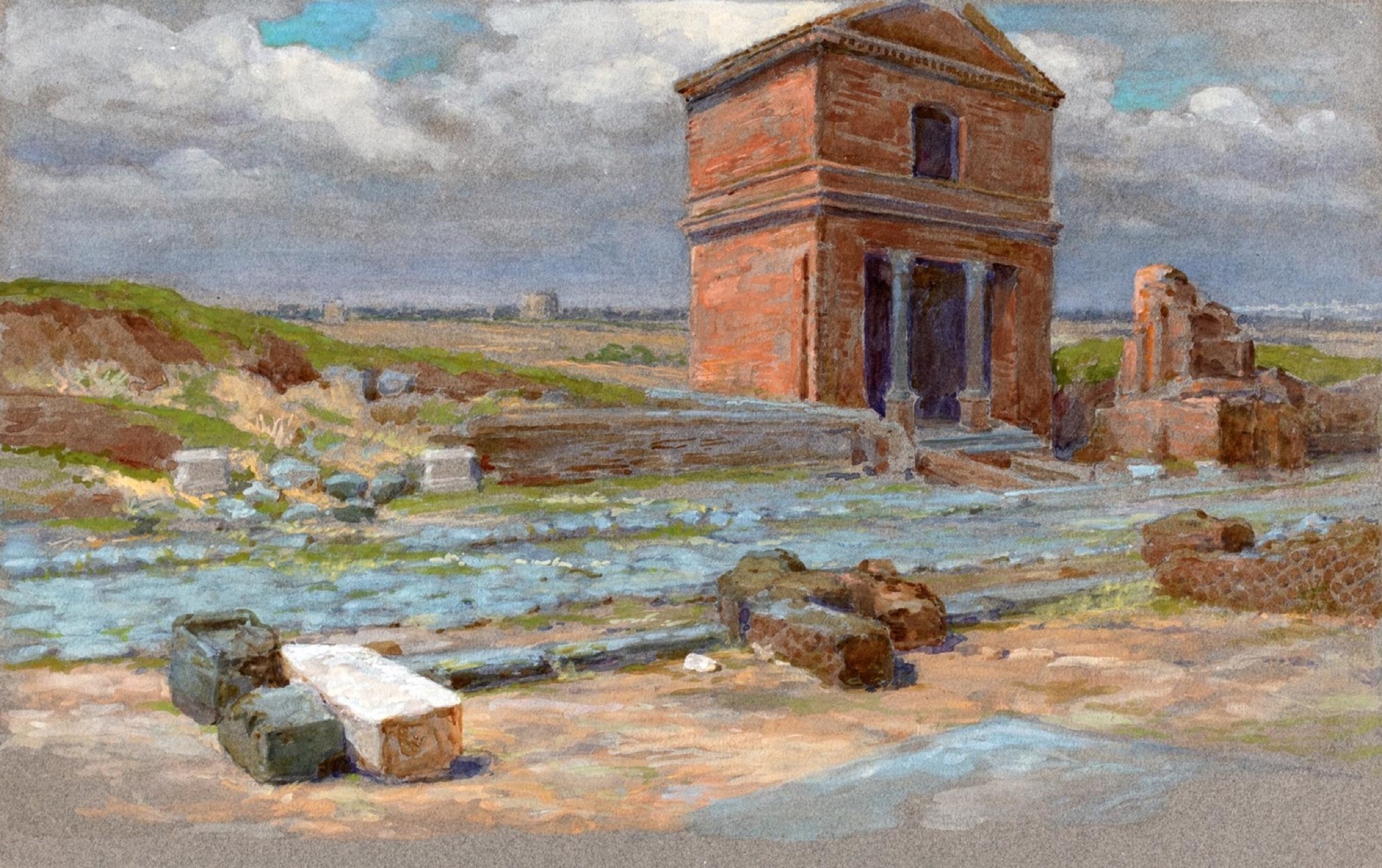 Ettore Ferrari (Roma 1845-1929) - Coppia di vedute nei pressi dell'Appia Antica