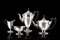 Servizio da tè e caffè in argento a corpo liscio di forma sagomata, composto da