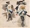 Raffaello Sorbi "Studio per soldati" olio su tela applicata a cartone (cm 9x9)