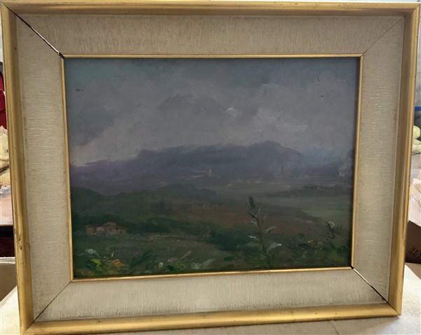 Luigi Brignoli "Campagna bergamasca" 1939 olio su compensato (cm 30x39) Al retro