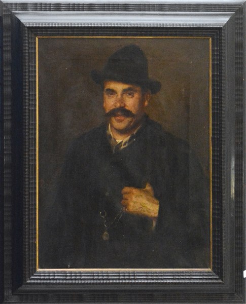 "Ritratto virile" olio su tela (cm 80x62) Firmato e datato '76 in basso a sinistra. Al retro: cartiglio (lievi difetti)