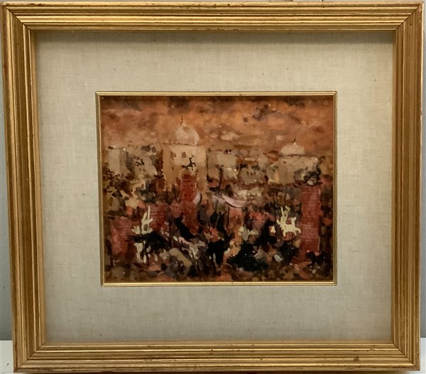 "Bozzetto di battaglia" 1940, tecnica mista su carta (cm 25x20) Al retro: cartiglio dell’autore. In cornice