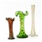 Lotto composto da tre vasi di epoche e manifatture differenti, dei quali uno in vetro trasparente incolore con decorazioni dorate, uno in vetro trasparente verde con decori floreali e uno in vetro iridescente. (h max cm 40,5) (lievi difetti)
