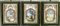 Ignoto del secolo XVIII "Paesaggi" tre dipinti a tempera su gesso (cm 16x12) In cornici architettoniche a trompe-l'oeil (difetti e restauri)