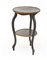 Etagere a due ripiani in legno laccato decorato a chinoiserie, profili dorati, gambe mosse. Tracce di etichetta alla base (d. cm 44,5x h. 71) (difetti)