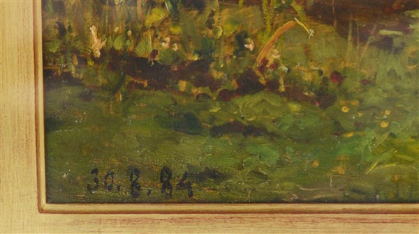 Lorenzo Delleani (Attribuito) "Campagna" 30.8.84 olio su tavola (cm 25x37) Data