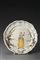 Piatto tondo in maiolica con bordo sagomato decorato al centro con figura di co