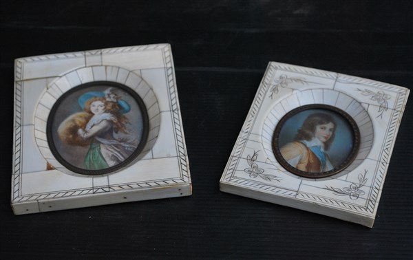 Lotto di due miniature dell'inizio del secolo XX, cornici in avoriolina (cm 8,5