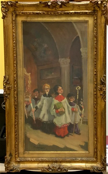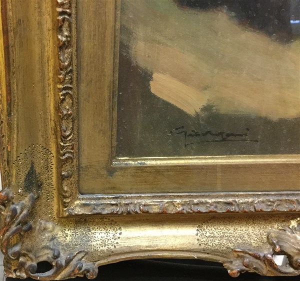 Firma indecifrata "Chierici" olio su tela (cm 62x31) Firmato in basso a sinistra. In cornice dorata
