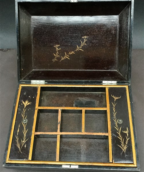 Scatola da lavoro in legno laccato con interno con vassoio estraibile a scomparti
