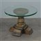 Lotto 189 | Tavolino in basso con base quadrilobata in legno, piano circolare in cristallo