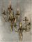 Coppia di appliques in bronzo dorato a tre luci, decorate a motivi fogliati (h cm 60) (difetti)
