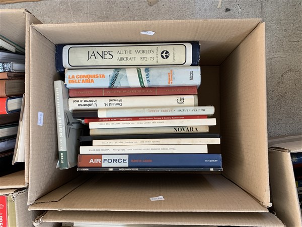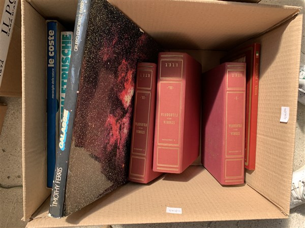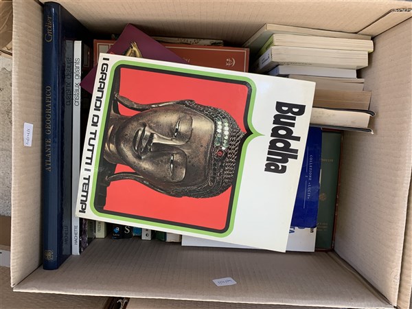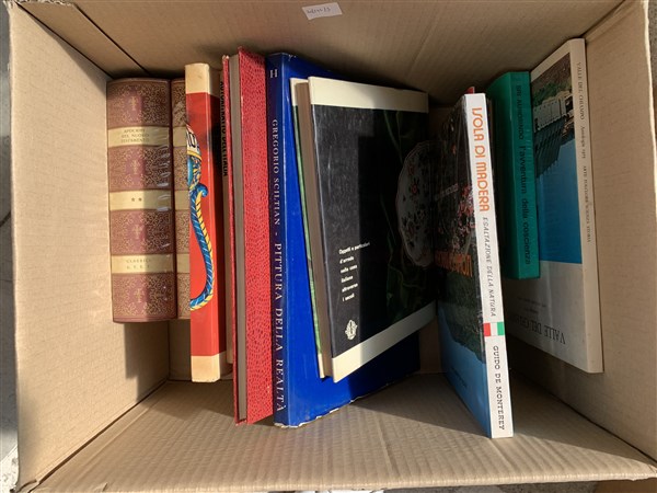 Lotto di 7 cartoni contenenti libri di argomento vario tra cui si segnalano l’e