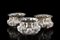 Gruppo di tre cestini in argento sbalzato a fiori e volute. Punzoni San Marco.
