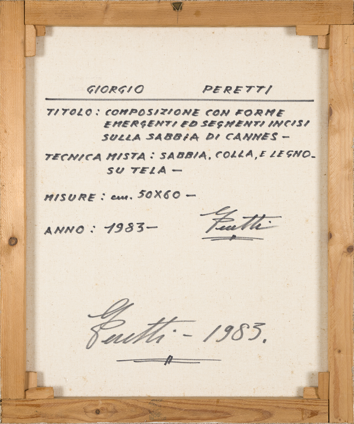 Firma, titolo, misure e datazione al retro