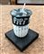 Tecnica mista su barattolo in plastica applicato su base in legno dipinto