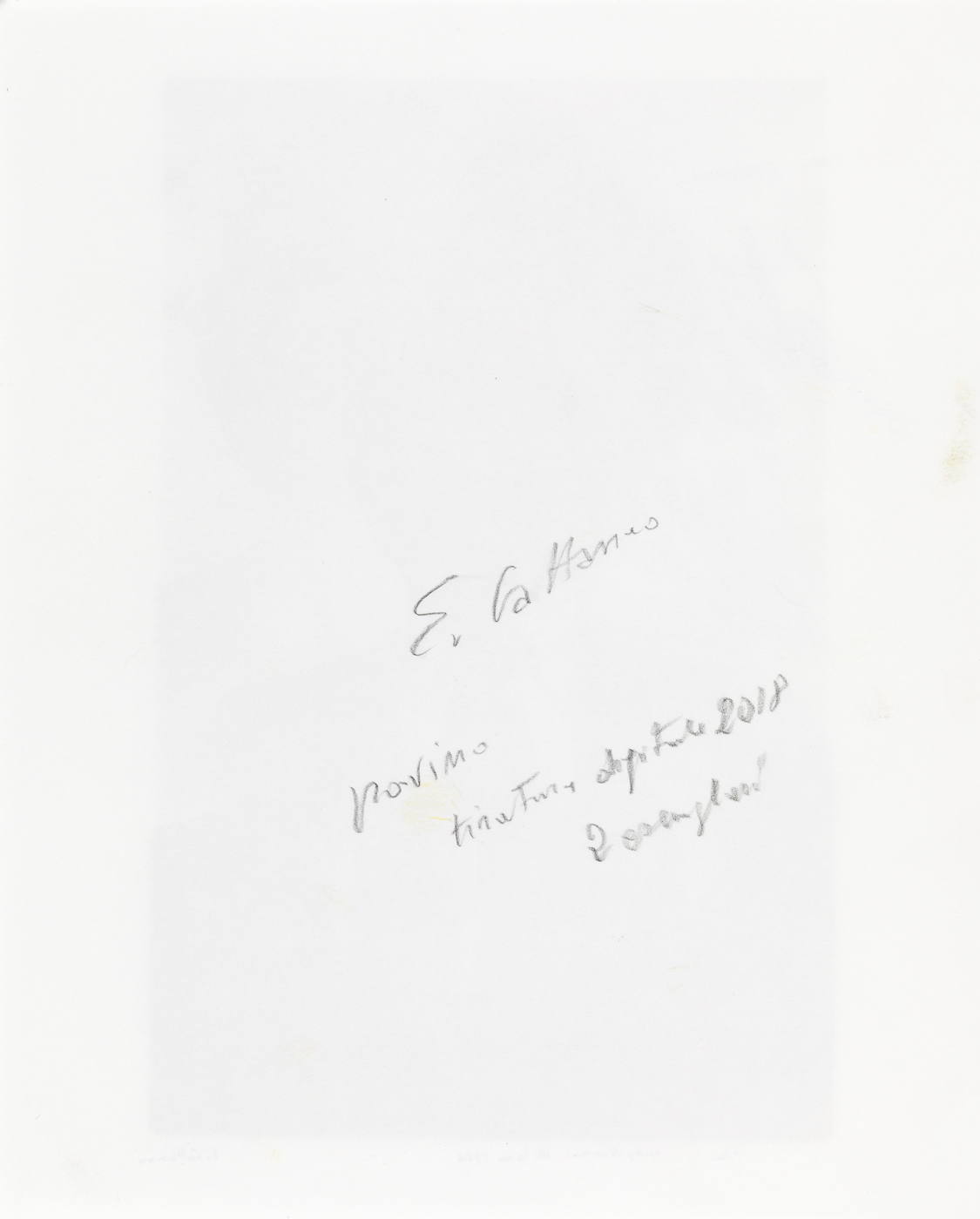 Iscrizione 'Provino di una tiratura digitale del 2018 a 2 esemplari' al retro