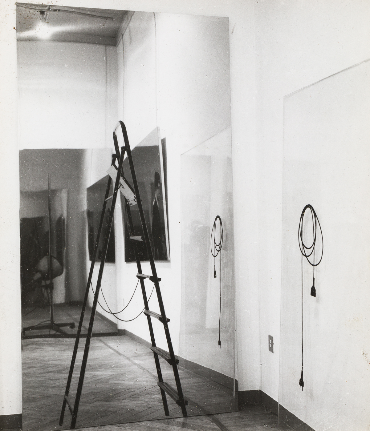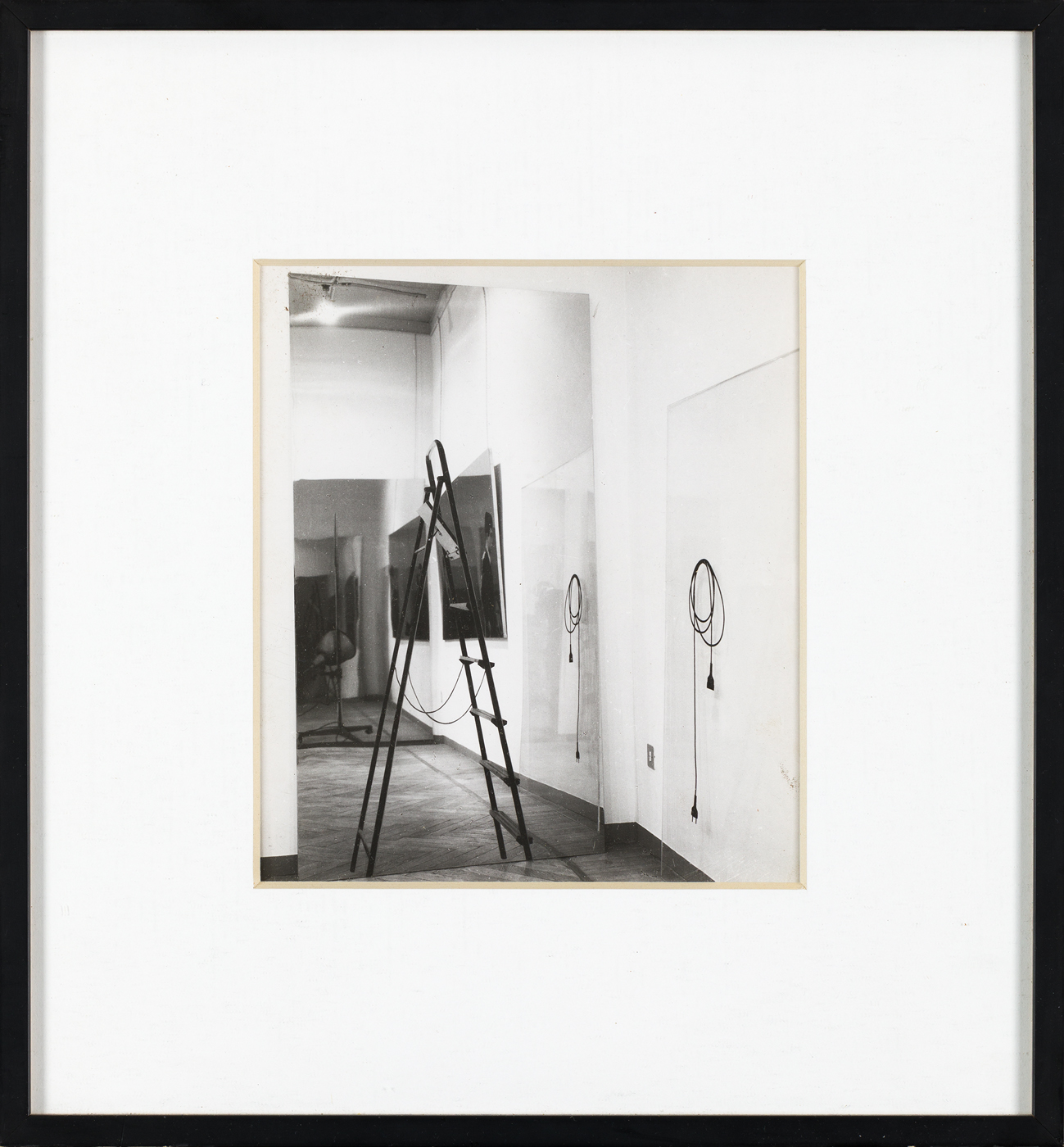 Fotografia raffigurante l'opera di Michelangelo Pistoletto 'Scala', del 1966, realizzata con velina su lamina inox cm 230x120 esposta in occasione della personale dell'Artista tenutasi presso Galleria Sperone, Torino