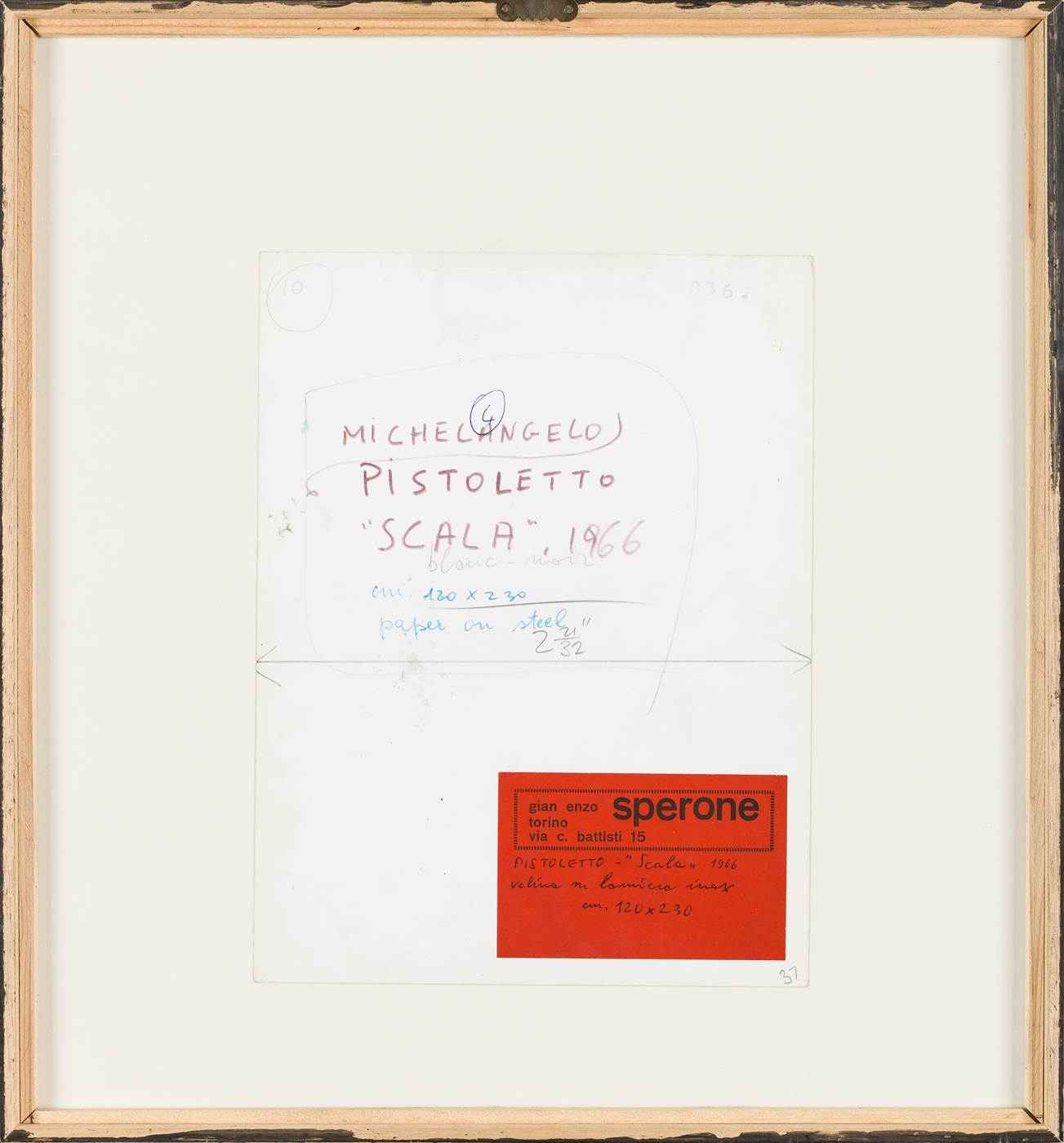 Etichetta della Galleria Sperone (TO) e iscrizioni al retro