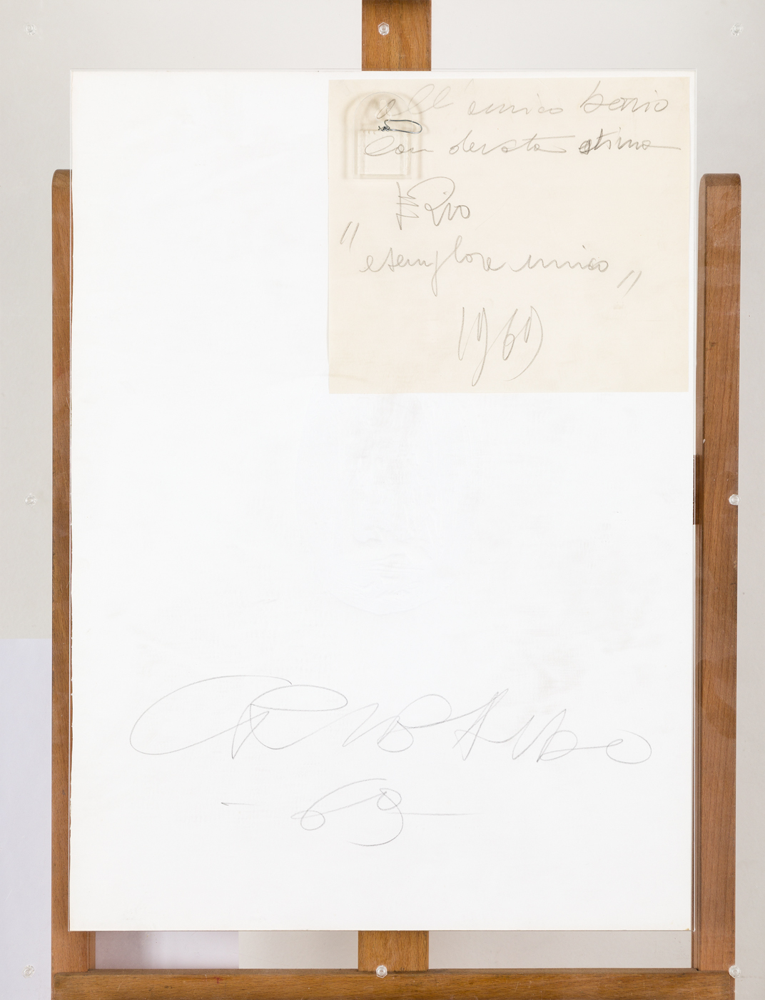 Firma, datazione, dedica ad personam e iscrizione 'Esemplare unico' su carta applicata al retro