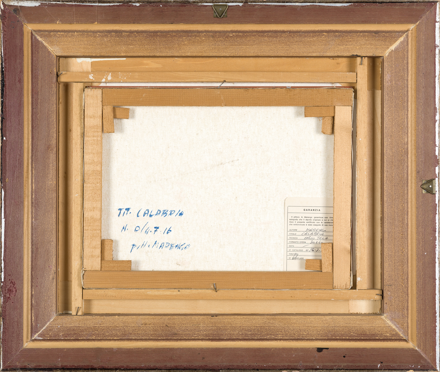 Certificato di garanzia con caratteristiche tecniche dell'opera e firma dell'Artista al retro
