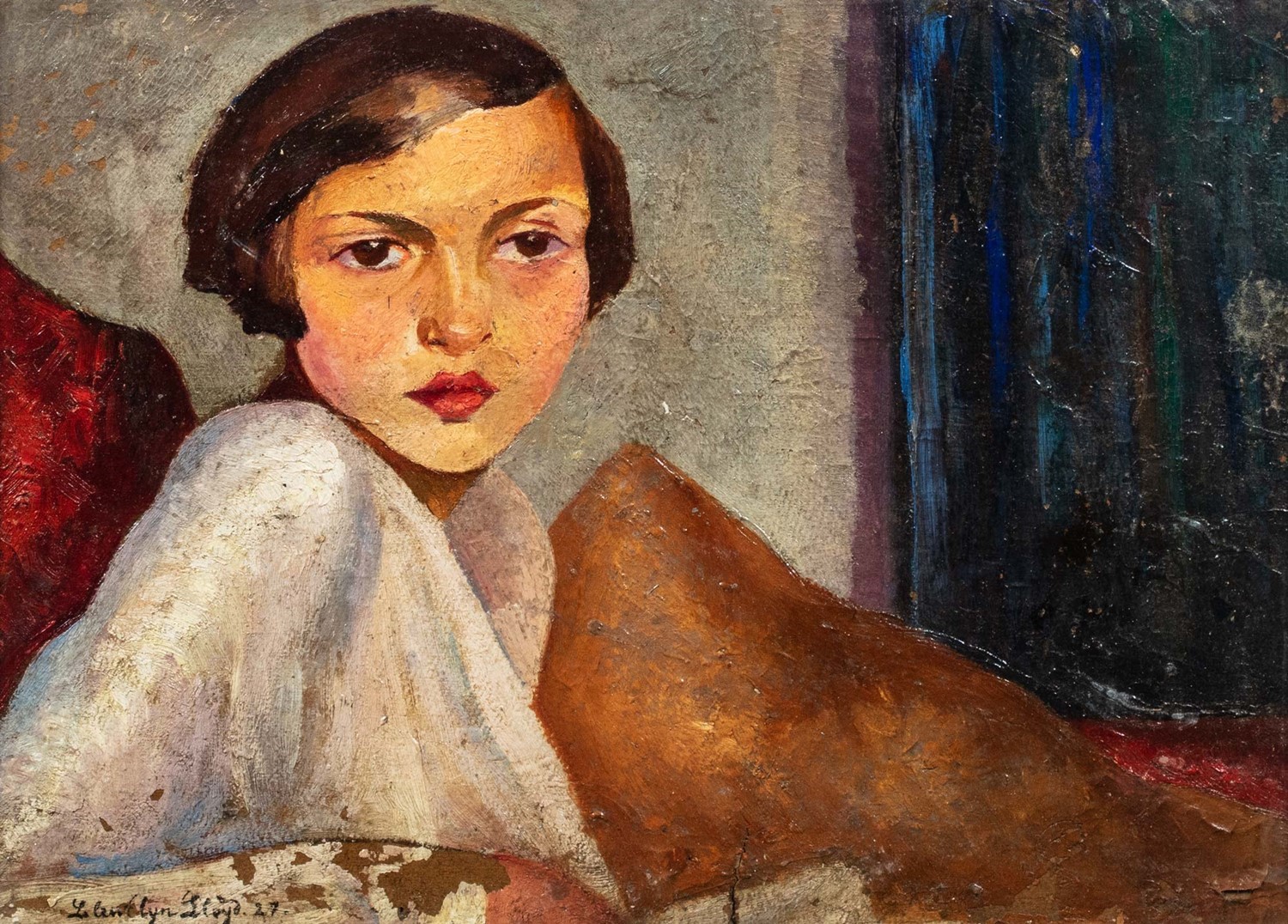 Scuola italiana, inizi secolo XX - Ritratto di giovane donna a mezzo busto in un interno