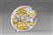 in maiolica decorata in policromia, piatto a fondo liscio con bordo rialzato