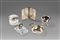 Lotto 97 | Lotto composto da 5 oggetti : un calamaio in cristallo e argento, un vasetto in cristallo con coperchio in argento, un portafoto in argento, un taste vin in argento e un piccolo vaso in argento