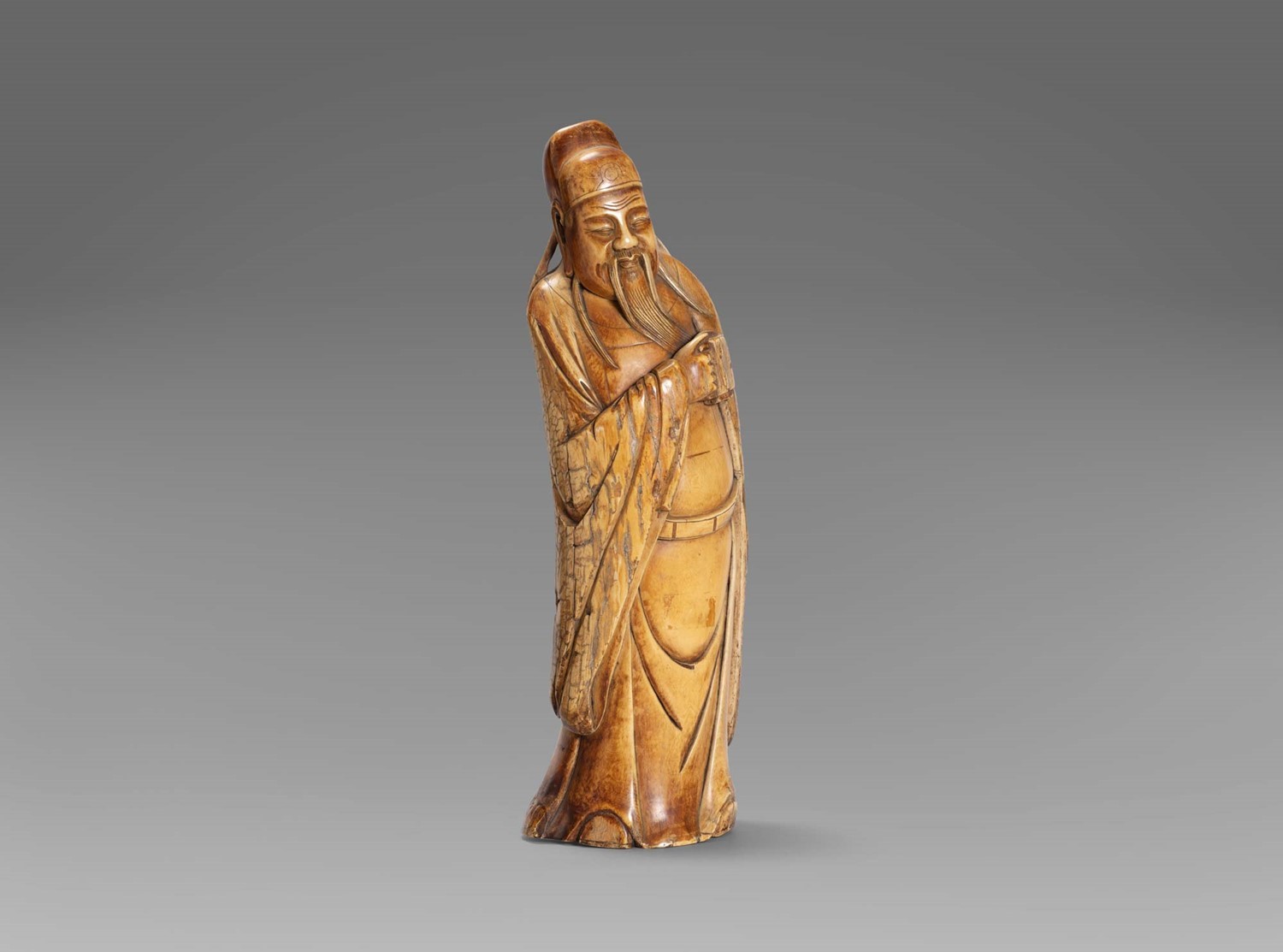 Scultura in avorio raffigurante figura di dignitario, Cina fine secolo XIX - inizi secolo XX