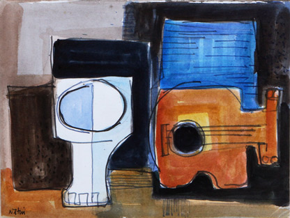 NATIVI Gualtiero (Pistoia 1921 - Greve in Chianti 1999) Natura morta, 1963 tecnica mista su carta riportata su cartone, cm. 20 x 26.5 Firma 'Nativi' (in basso a sinistra) Autentica del figlio Berto Nativi, con n° di archivio D6428 Certificate of the artist's son Berto Nativi, under no. D6428 Bibliografia: Att. datazione doppia 1963-64