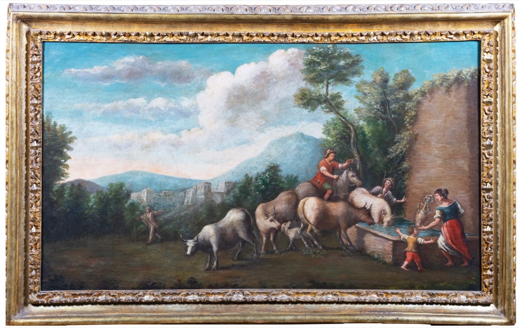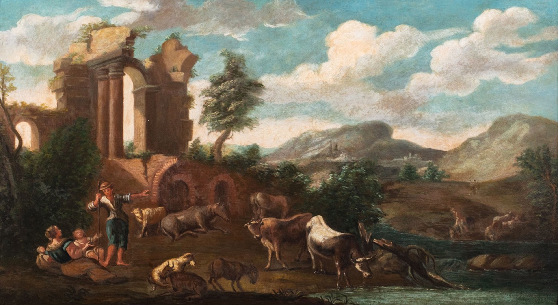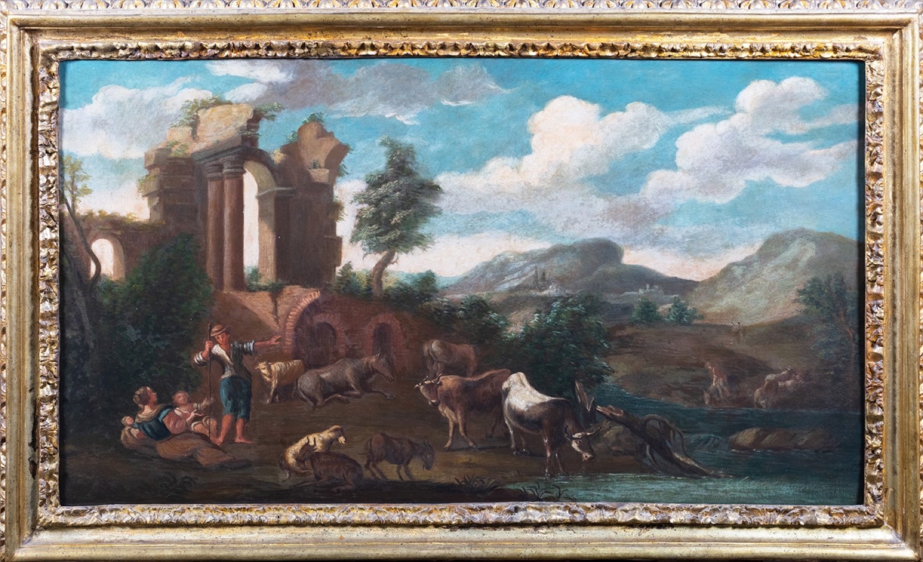Lotto 121 | Scuola dell'Italia meridionale, secolo XVII - Due paesaggi con pastori e armenti