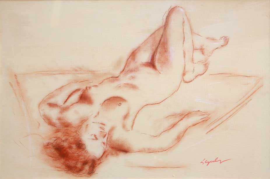 CREPALDI Luciano (Novara, 1949) Nudo, anni 2000 sanguigna e tecnica mista su tavola, cm. 40 x 60 Firma 'L. Crepaldi' (in basso a destra) #Firma 'L. Crepaldi' (al retro) Autentica dell'artista su fotografia Certificate issued by the artist